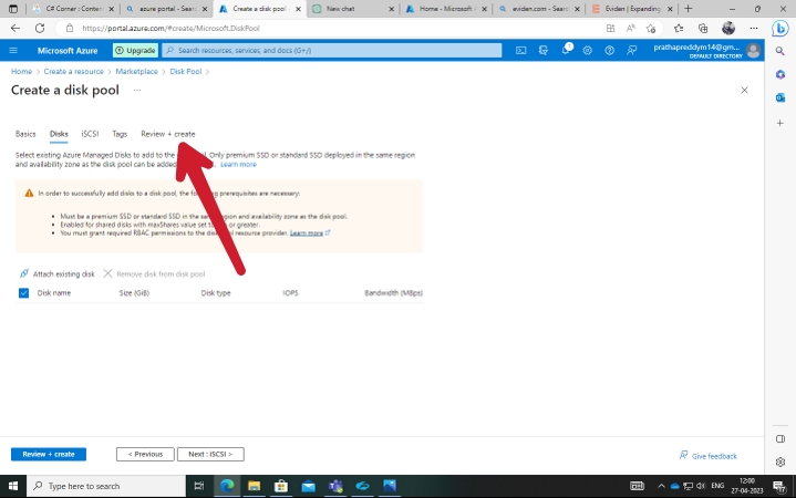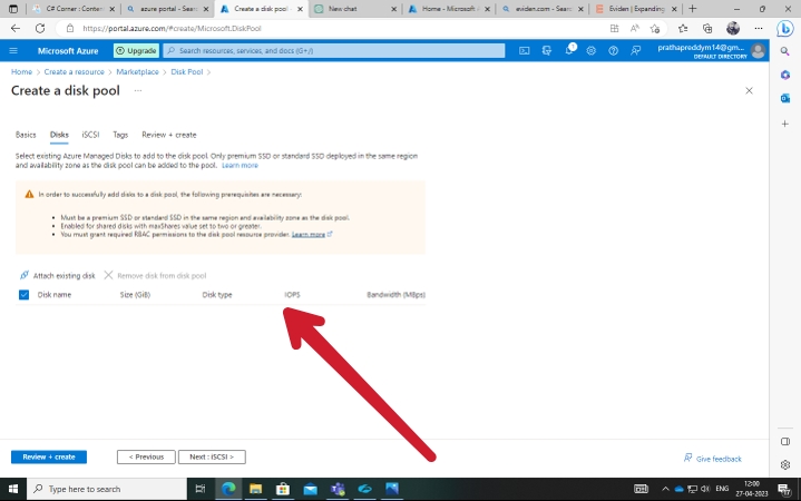 Create Disk pool. This Create operation can take 15 minutes to complete. This is expected service behavior.